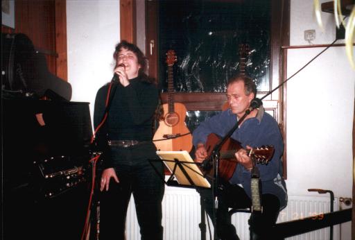 With Hans Roth as one half of a temporary duo called "Time & Vinegar" (because I can never have enough of either). Judging from the grimaces, I'm doing Jacques Brel, and poor Hans is trying to read my handwriting...